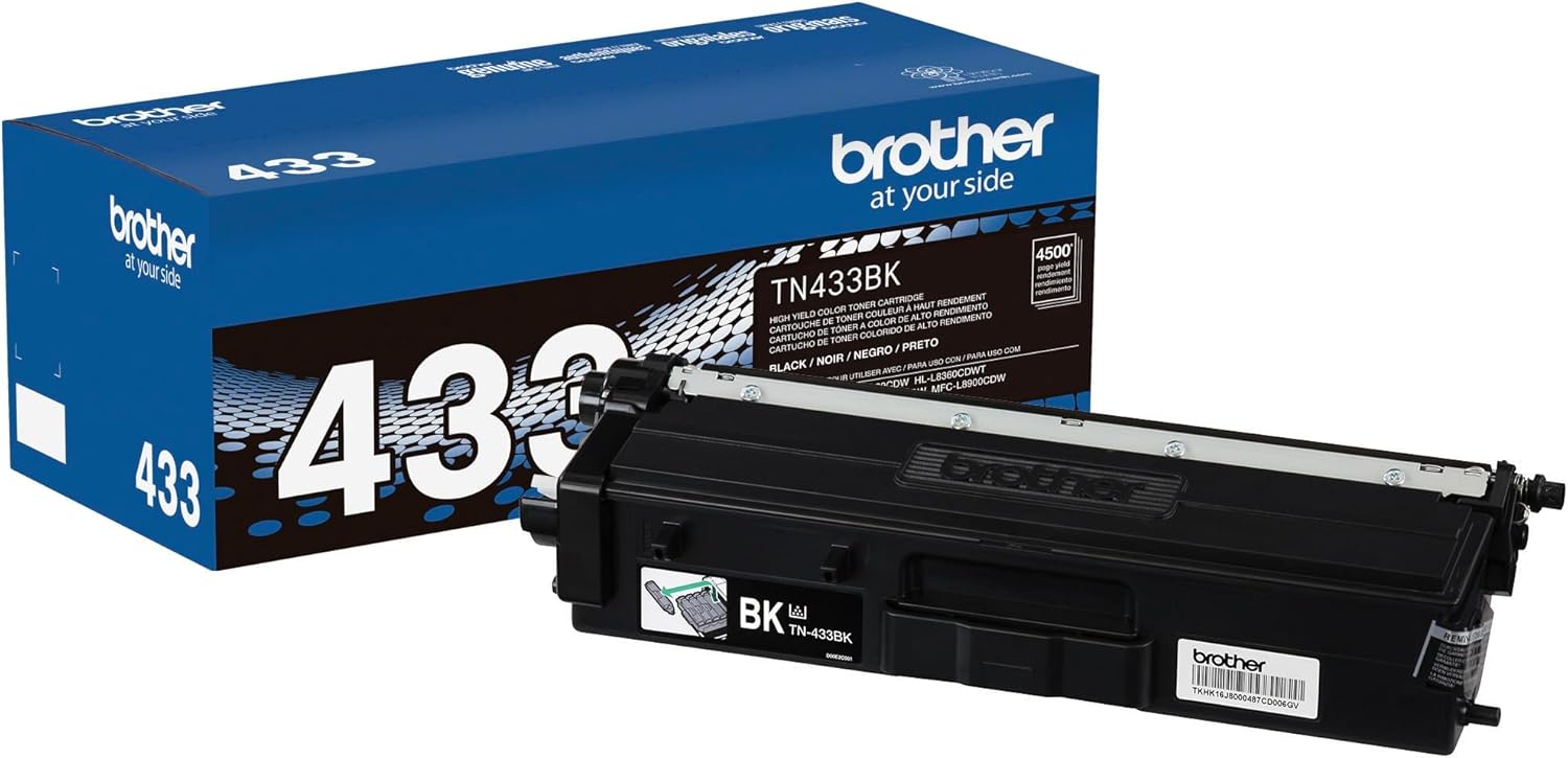 Brother Genuine TN433BK High-yield Black Toner Cartridge. Professional color laser print quality you can consistently rely on for up to 4,500 pages‡. Intelligently engineered to work in seamless unison with your Brother printer. Brother Genuine toner produces rich, color prints that withstand the test of time. Brother offers an environmentally responsible way for customers to dispose of Brother Genuine cartridges.Brother Genuine TN433BK is for use with: HL-L8260CDW, HL-L8360CDW, HL-L8360CDWT, MFC-L8610CDW, MFC-L8895CDW, MFC-L8900CDW