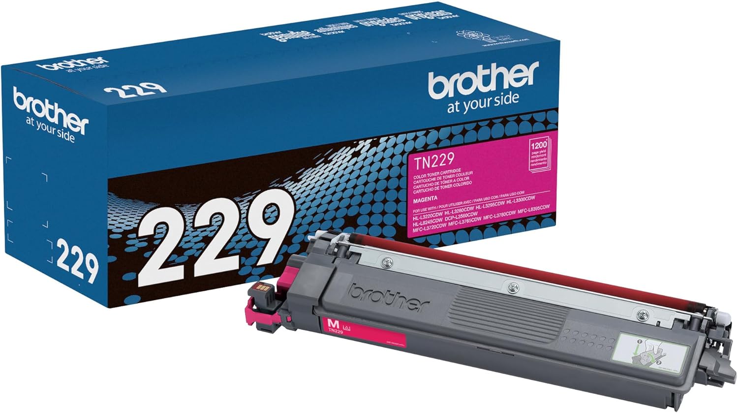 OEM Brother TN229 magenta toner cartridge yields up to 1,200 pages of rich color output—perfect for reports and photos.