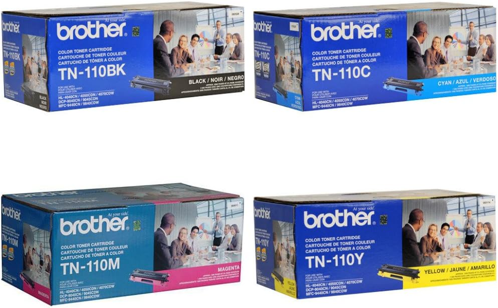 Brother TN110BK TN110C TN110M TN110Y Genuine OEM Toner Cartridges 4 Color Set – Black: 2,500 pages, Color: 1,500 pages each