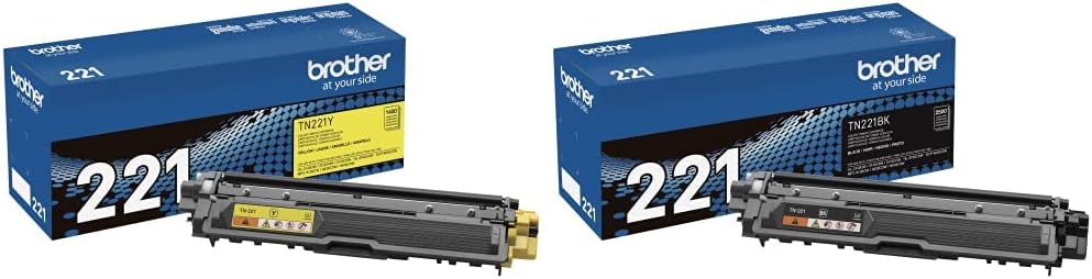 Brother Printer TN221Y Standard Yield Yellow Toner CartridgeStandard yield yellow toner cartridgeBrother TN221BK Black Toner CartridgeStandard yield black toner cartridgeCompatible with Brother Printer(s):